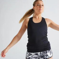 Compra en Decathlon Camiseta Fitness Cardio My TopSin Mangas Espalda Natación Cuello Redondo Una camiseta sin mangas, sencilla y cómoda, que va bien con todo y que es esencial para todas las actividades de fitness.