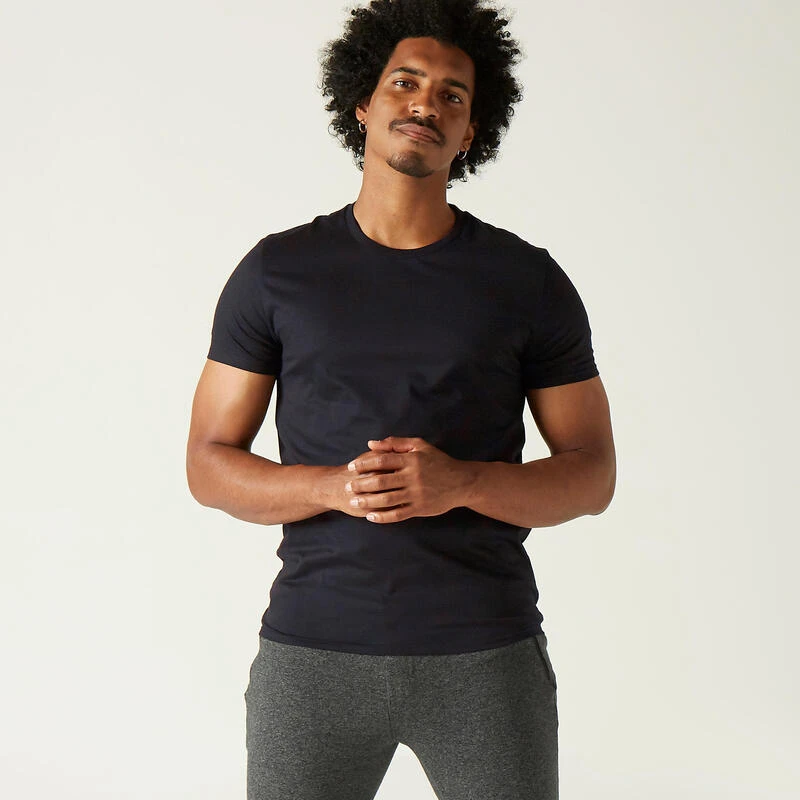 Camiseta Fitness Manga Corta 100% Algodón Hombre Domyos Negro