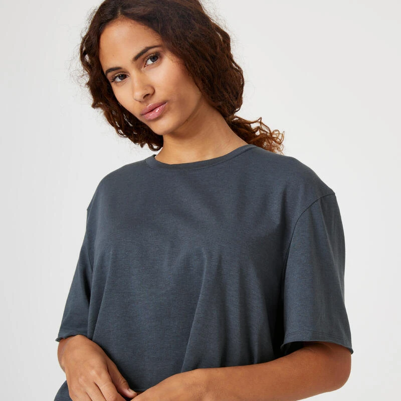Compra en Decathlon Camiseta fitness manga corta crop top Mujer Domyos Camiseta con un tipo de corte crop top siguiendo las últimas tendencias. Tejido compuesto por algodón y Lyocell para favorecer la libertad de movimientos.