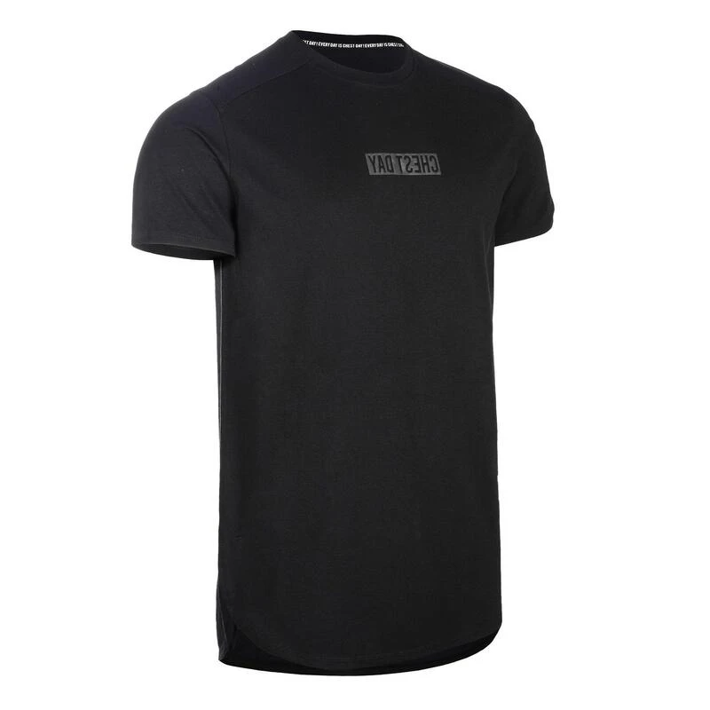 Compra en Decathlon Camiseta manga corta hombre Musculación Domyos Chest Day negra Nuestros diseñadores apasionados por la musculación han creado esta camiseta específicamente para las sesiones de pectorales (del lunes… :-))