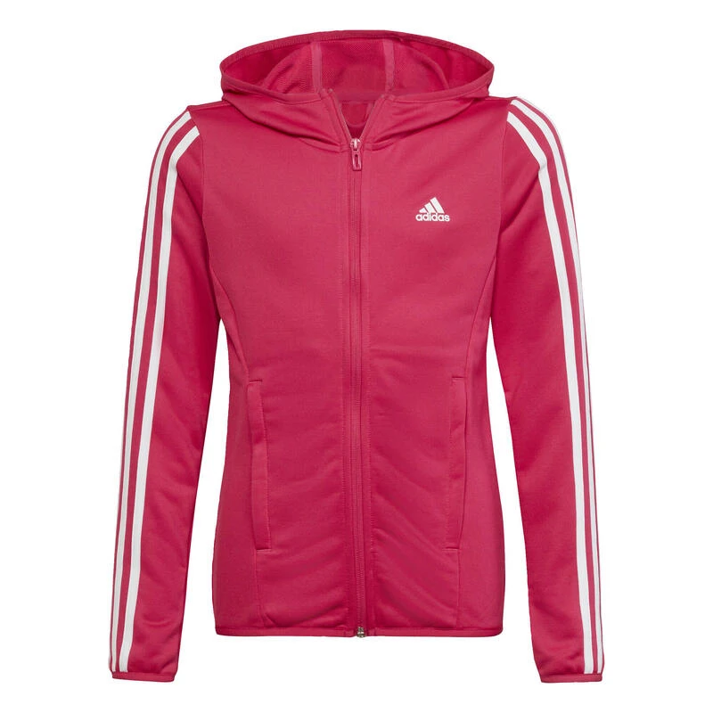 Compra en Decathlon Chaqueta con capucha adidas Designed To Move 3 bandas Confort y abrigo para días fríos