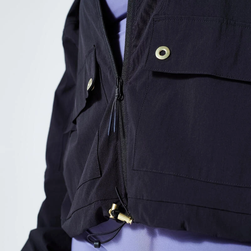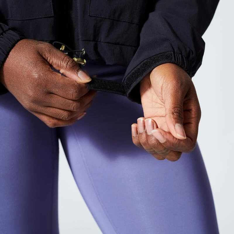 Compra en Decathlon Chaqueta Fitness Negro Amplia Capucha Una chaqueta con capucha muy ligera con un corte holgado y corto, para usar antes o después de la práctica, o incluso todos los días.