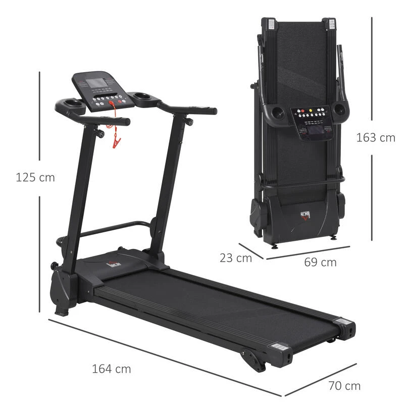 Compra en Decathlon Cinta de correr plegable con 5 programas HOMCOM 164x70x125 cm negro ¡Que la falta de tiempo no sea una excusa para no hacer ejercicio! Con esta cinta de correr de HOMCOM podrás realizar ejercicio en tu casa u oficina.