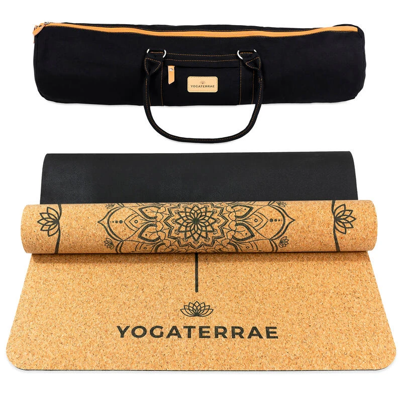 Compra en Decathlon Esterilla yoga de corcho y caucho natural + Correa + Bolsa de transporte Esterilla de yoga antideslizante de corcho y caucho natural LINEA DE CUERPO + MANDALA 183x66x0,5cm + Correa de transporte y tensión + Bolsa de transporte
