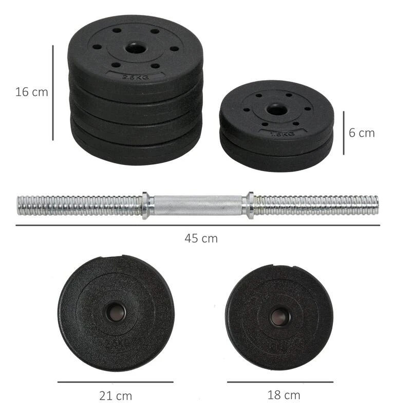 Juego De Mancuernas Ajustable 30KG Con Barra HOMCOM 43x18x7,5 Cm Ngero
