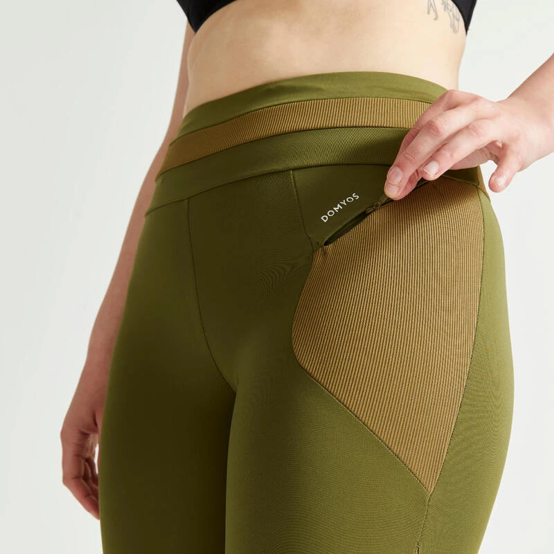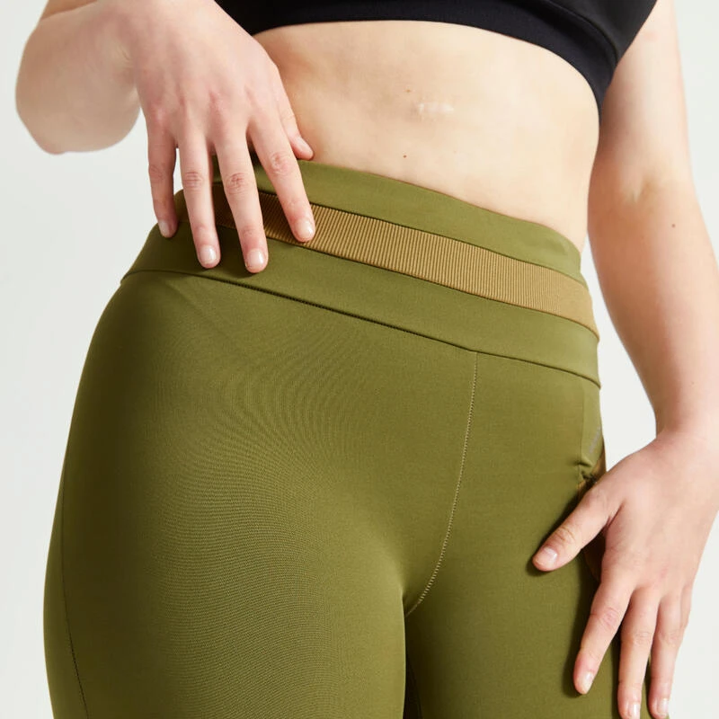 Leggings Fitness Cardio Mujer Caqui Talle Alto Cordón De Ajuste