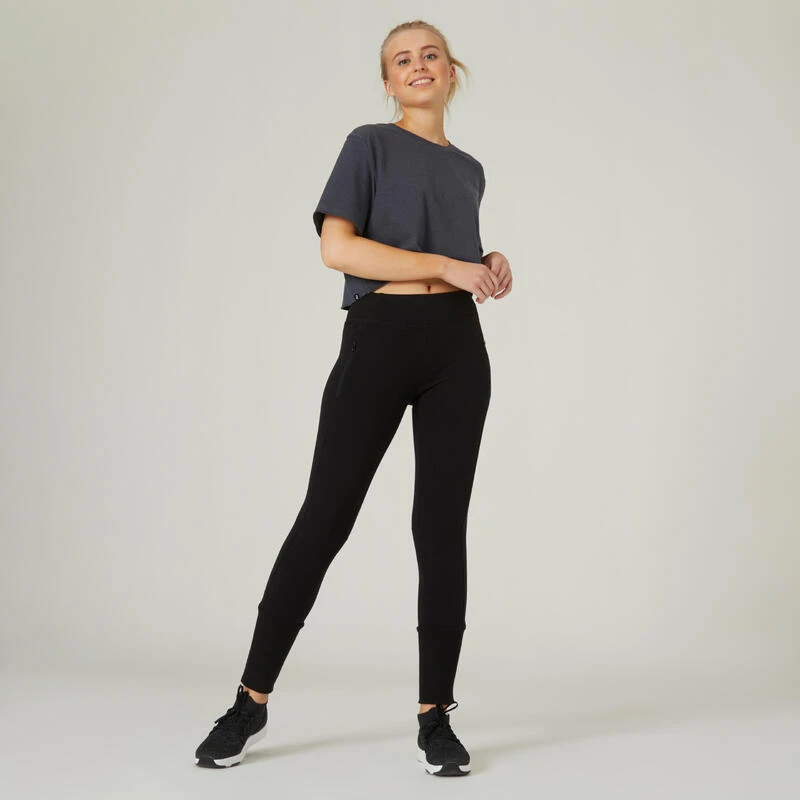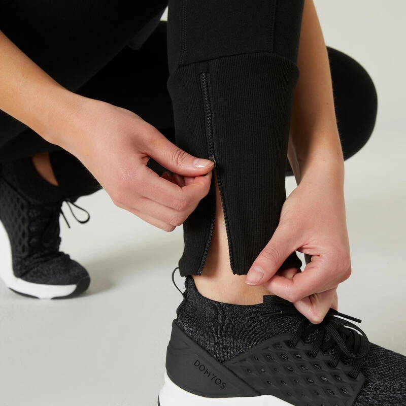 Pantalón Jogger Fitness Ajustado Algodón Con Bolsillos Mujer Domyos 520 Negro